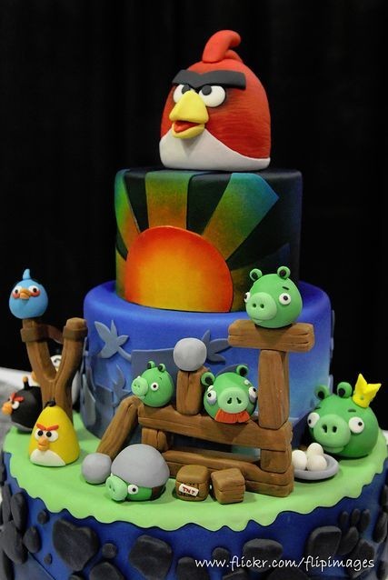 Si sois adicto a este juego o conocéis a alguien que lo sea, ya tenéis la oportunidad de hacer uno de estos dulces a juego con la adicción más de moda: Angry Birds. Podéis desarrollar una nueva pantalla en una tarta de tres pisos como vemos en la primera foto.