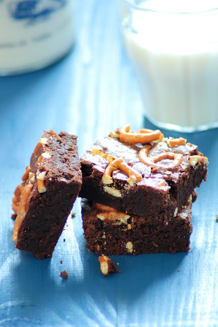 Brownies con galletas saladas pretzel. Recetas
