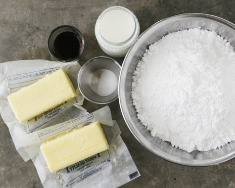 Parte de la idea de una buttercream cuya receta contenga: azúcar glas, mantequilla, leche y vainilla. Según cuenta, la receta es un poco a ojo, según las necesidades que tenga cada uno, así habrá que ir ajustando la consistencia según lo que queramos hacer.