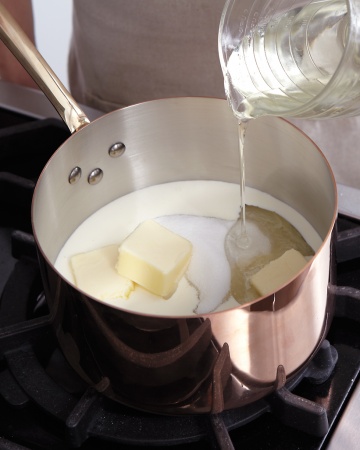 Uno de los ingredientes fundamentales es el sirope de maiz, también se puede usar la glucosa, ya que realiza la misma función: la anticristalización y alisado del caramelo.