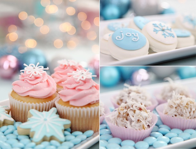 Así, en Karas’s Party nos dan esta idea, toda la decoración en rosas, celestes..la combinación es preciosa y llena de detalles. El brillo navideño lo aportan abetos plateados, perlas, purpurinas,..