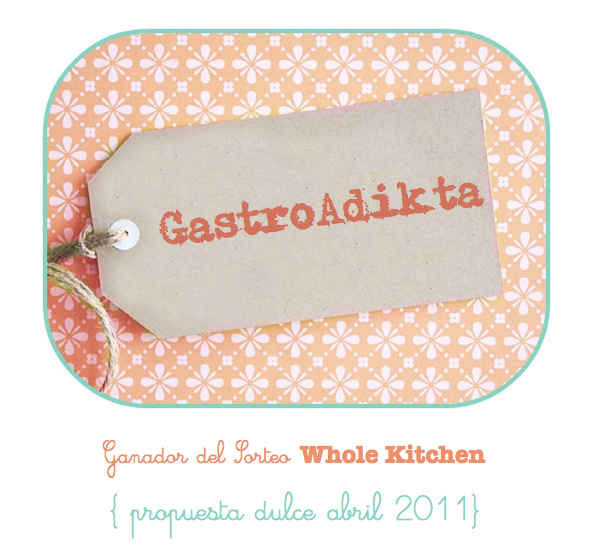 GANADOR DEL SORTEO: Propuesta Dulce Abril 2011 El ganador del sorteo mensual para el Circulo Whole Kitchen en la Propuesta Dulce de abril de 2011 ha sido GastroAdikta, que recibirá el set de cupcakes groovy party de Meri Meri ¡¡ Enhorabuena !! Responder a Paulittta Cancelar respuesta Tu dirección de correo electrónico no será publicada. Los campos necesarios están marcados * Nombre * Correo electrónico * Web Comentario Puedes usar las siguientes etiquetas y atributos HTML: <a href="" title=""> <abbr title=""> <acronym title=""> <b> <blockquote cite=""> <cite> <code> <del datetime=""> <em> <i> <q cite=""> <strike> <strong>