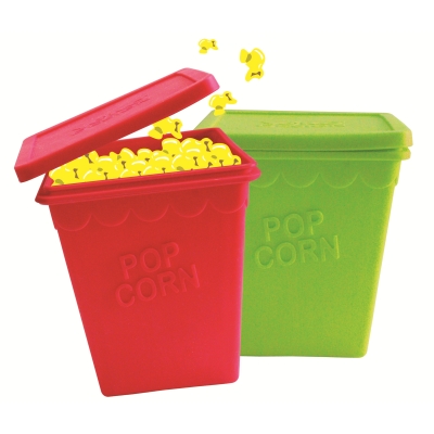 Se trata del bol para microondas “Magic Pop”, con el que podrás preparar las palomitas en sólo 3 minutos,  sólo necesitas introducir los granos de maíz en el recipiente, si quieres también puedes añadir sabor a las mismas en este mismo momento, luego introducirlo en el microondas y pasado un minuto agitarlo, dejar cocer 2 minutos más, y listo tendrás un cubo de palomitas recién hechas.