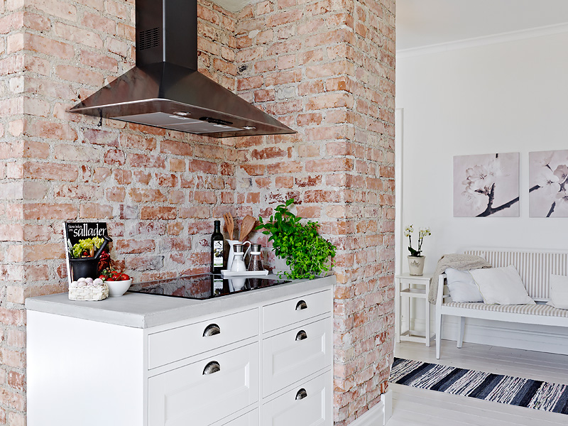 Dejar uno de los paneles de la cocina en piedra recrea una sensación de calidez, aquí ellos han dejado la zona de cocción independiente.