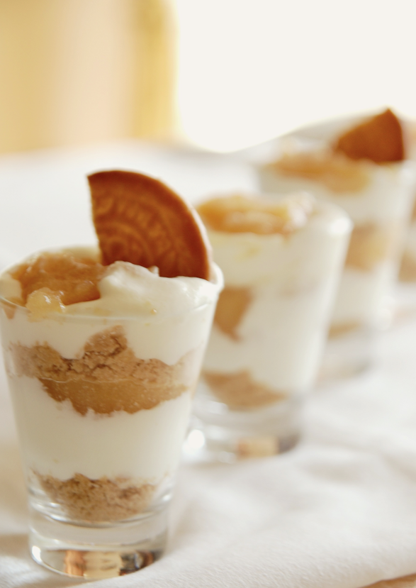 Preparar nuestro vasitos alternando las capas de nata, membrillo y galletas. Finalizar con membrillo y adornar con un trozo de galleta.